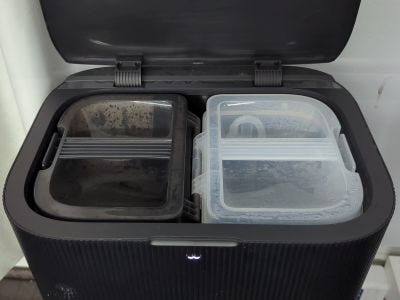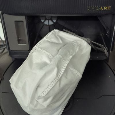 Finally, Frank occasionally needs the bag inside his den cleaned. Once he docks, his bin is emptied into this bag. (You can also see the container for the concentrate right next to it.