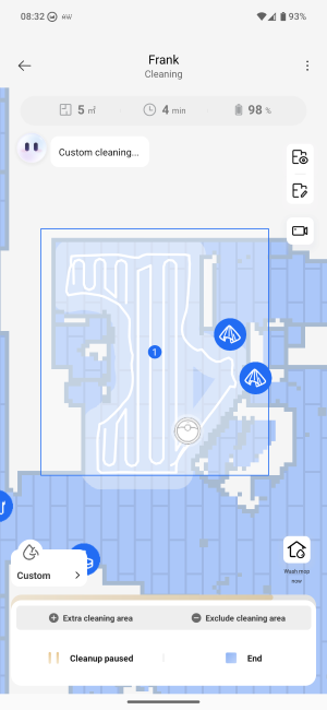 Frank has all sorts of options for controls. We use the simplest. We manually tell him to clean the house during the week. And on weekends, we tell him to clean a specific area that gets extra dirty.