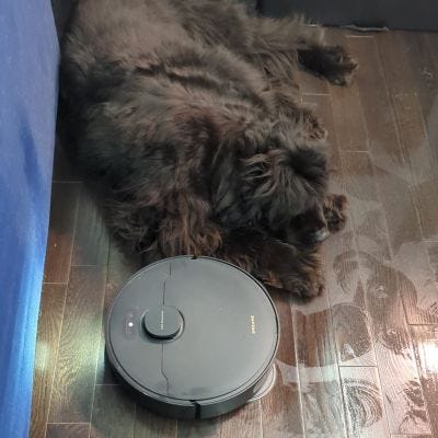 Grooming: Frank needs to be groomed after he works. It isn’t much and is way less work than cleaning the floors ourselves. It may be easier for you, if you don’t have a Newfie and a Maine Coon Cat.