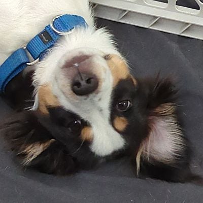 Dante barely noticed Frank. The little Mini American is still a puppy. He kind of went, “What?”