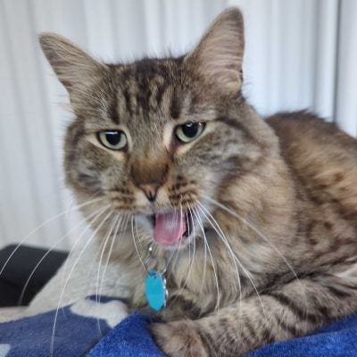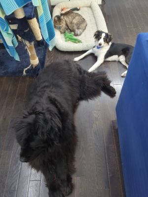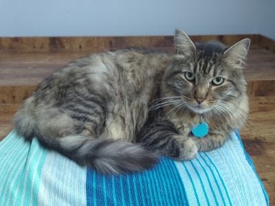 Thanks for sharing, Tod, Anna. Loved reading about Beleth. Fur-covering clothes? The Swamp-doodle doesn't shed, thankfully. Dander, yes. The Feline-muse is extremely neat. She grooms herself constantly, though we do find little patches she missed. She's still rather feral, so she doesn't like climbing into boxes. Doesn't trust them with the number of traps in our neighborhood.