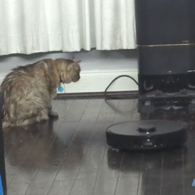 I gallumphed over to Frank’s house. Frank was just setting out on a clean-up mission. But he stopped to talk with me.