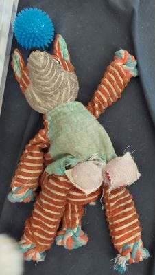Mr. Fox and the rest had been members of the family for years. But what about the newest, brainless member? I asked Dante what he’d been been doing?
