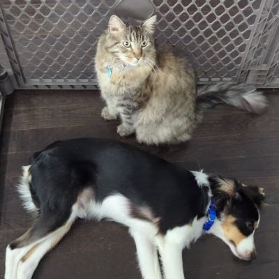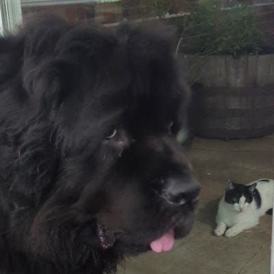 The puppy was already bigger than him, but the cat knew being called a “little guy” didn’t bother Dante. Plus, he was Beleth’s “little brother” - the same way Aki, the tiny calico, was the big sister to both himself and Crokell, the huge, drooling Newfoundland dog that rounded out their family.