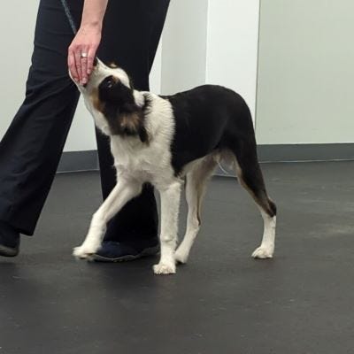 You can see in the videos (more with Dante than Crokell) that this method gets them to step forward. There are other ways that don’t involve moving forward.