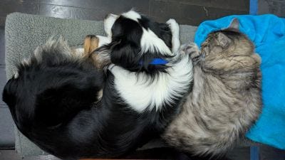 If your critters are napping, let them. Better yet, take it as a suggestion and enjoy a nap yourself. Recharge and come out ready for more chaos!