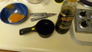 Similarly, prepare the balsamic vinegar by pouring it into a measuring cup.
