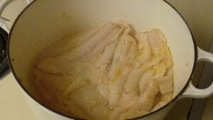 Now set the vindaloo paste aside, and let’s work on the protein and the rest of the sauce. In this version of vindaloo, the role of chicken will be played by fish. You can use venison, chicken, pork, or whatever protein you like though. (I might have to try this with rabbit.)