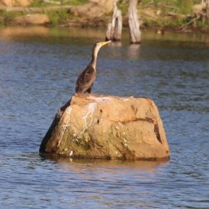 And at the back of the ranch, we have a trio of birds. First a water bird that took over Turtle Rock. In other times of year, the water is higher and turtles can get on top of the rock to sunbath.