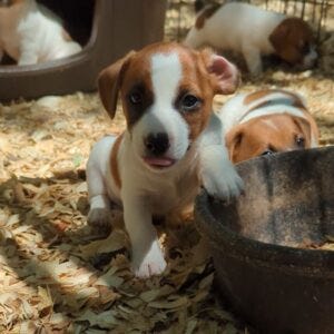 And right next to the sheep were Anna’s favorites – the puppies. We immediately found the future Jack Russell Terrier manager. He had his arm up and was taking his ease while the other puppies ran about their business.
